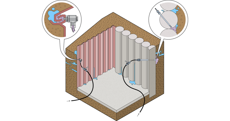 Typically deployed injection products range from tough, elastic two-component reaction resins with foaming action to high-penetration acrylate grouts with swelling action. Other applications are possible.